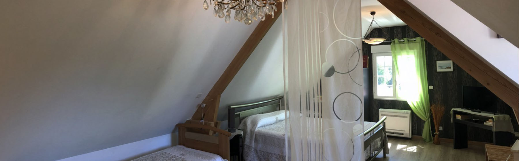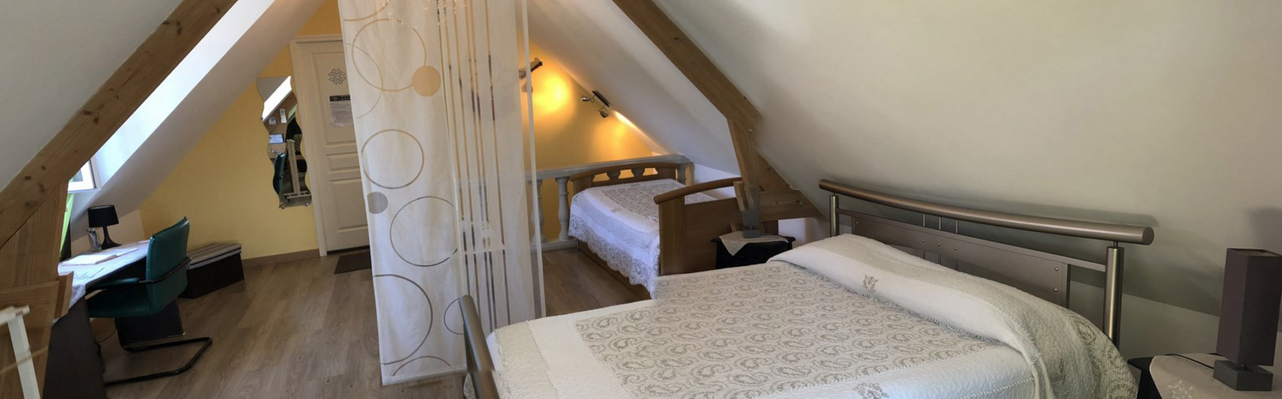 Le couchage est composé, d'un grand lit en 160 cm , elle peut être complètée de 3 lits une place et un lit bébé si nécessaire
