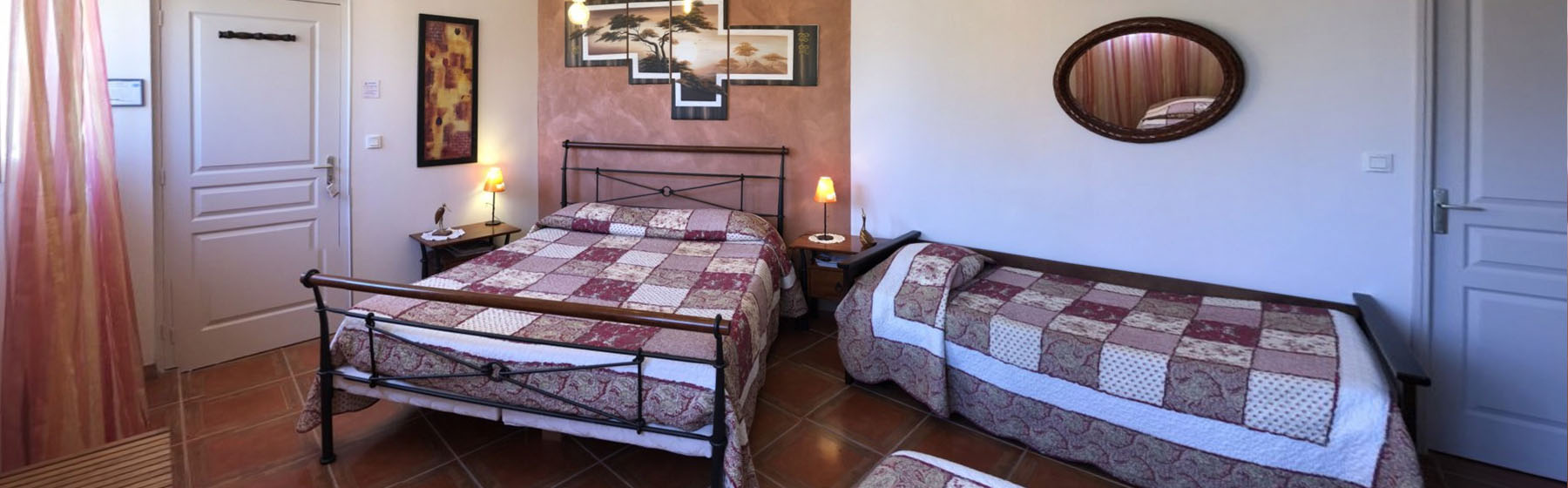 Choisissez le confort de cette chambre idéalement située au rez de chaussée, y compris la salle de bain et les WC. Cette chambre spacieuse, peut acceuillir jusqu'à 4 personnes.